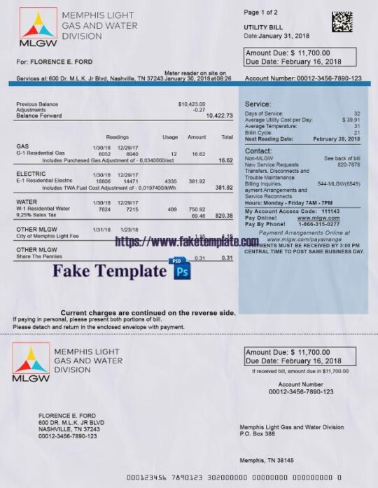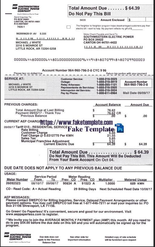 Arkansas Utility Bill Psd Template