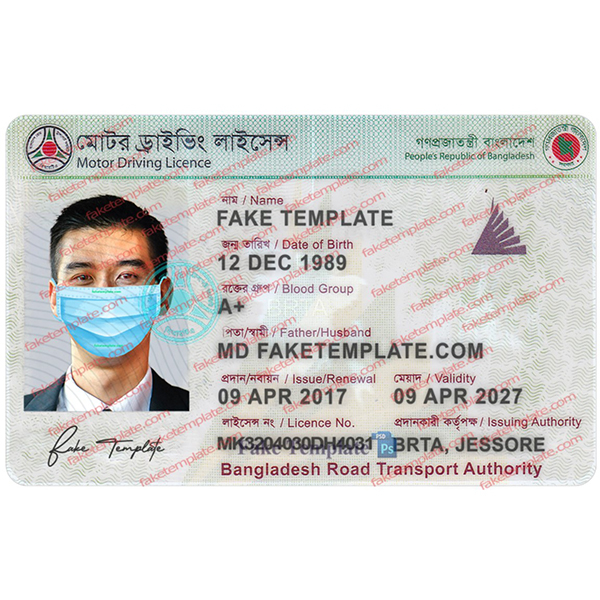Buying and possessing PSD templates is not illegal. However, Fake bangladesh driver license is for web illustrative purpose only. The use for fraudulent purposes is prohibited. so,use the template with your own responsibility.If you are intended to use our template for making a fake PVC License, Card, ID please leave our site immediately