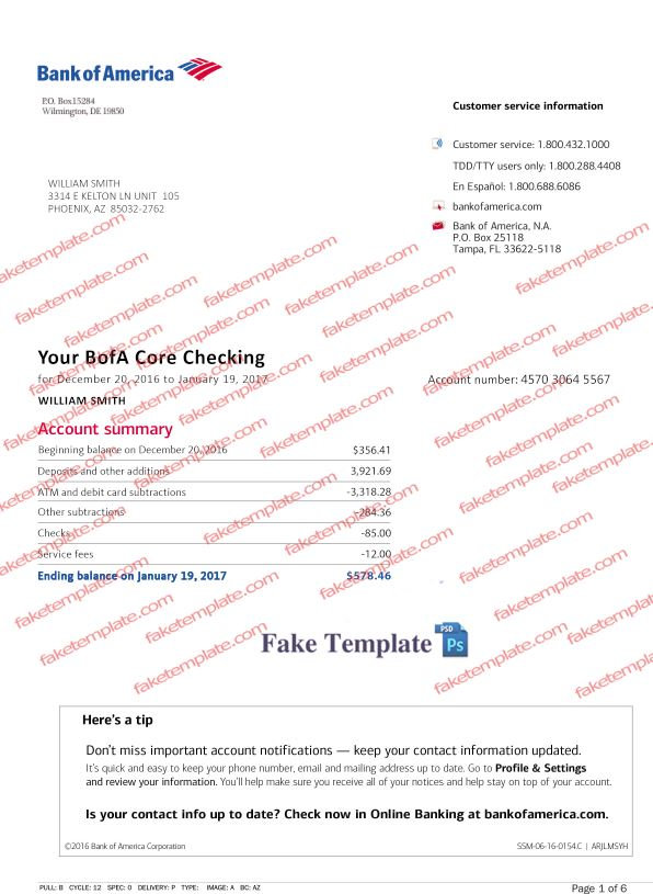 Buying and possessing Fake Bank of America Statement Template is not illegal. However, This template is for web illustrative purpose only. The use for fraudulent purposes is prohibited. so,use the template with your own responsibility.