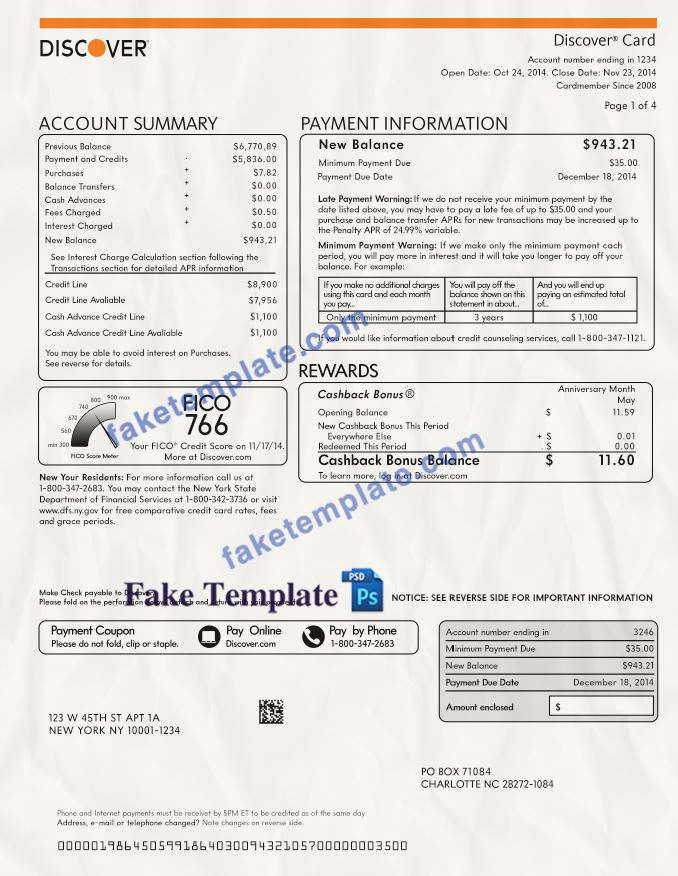 Buying and possessing Discover Card Statement Download is not illegal. However, This template is for web illustrative purpose only. The use for fraudulent purposes is prohibited. so,use the template with your own responsibility.