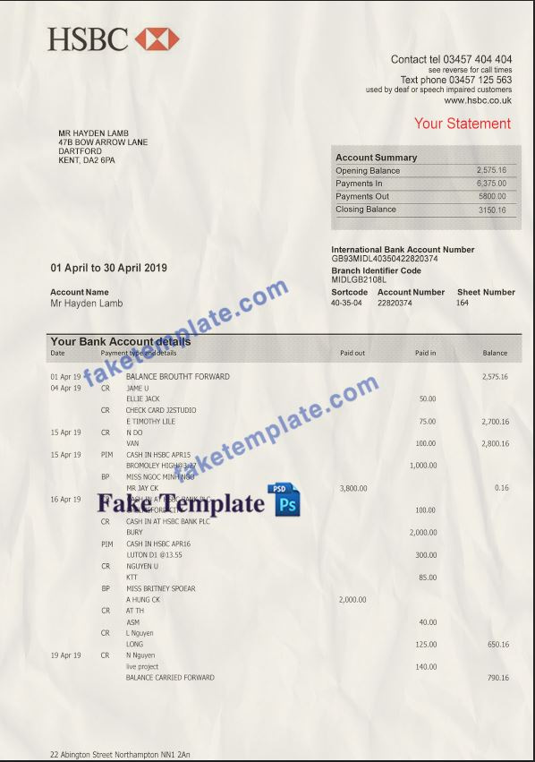 Buying and possessing Fake HSBC Bank Statement Template is not illegal. However, This template is for web illustrative purpose only. The use for fraudulent purposes is prohibited. so,use the template with your own responsibility.