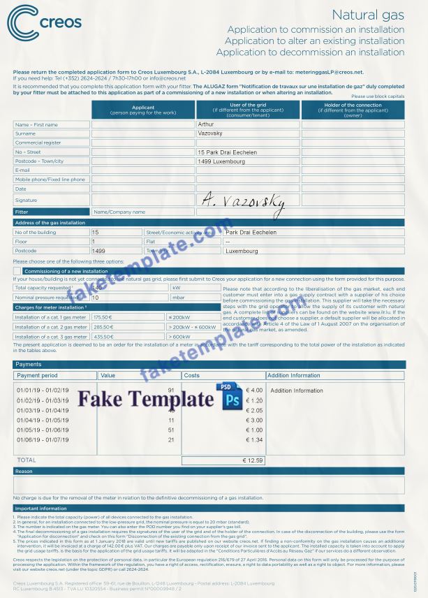 Luxembourg Gas Utility Bill Template: Iowa Proof of address psd template