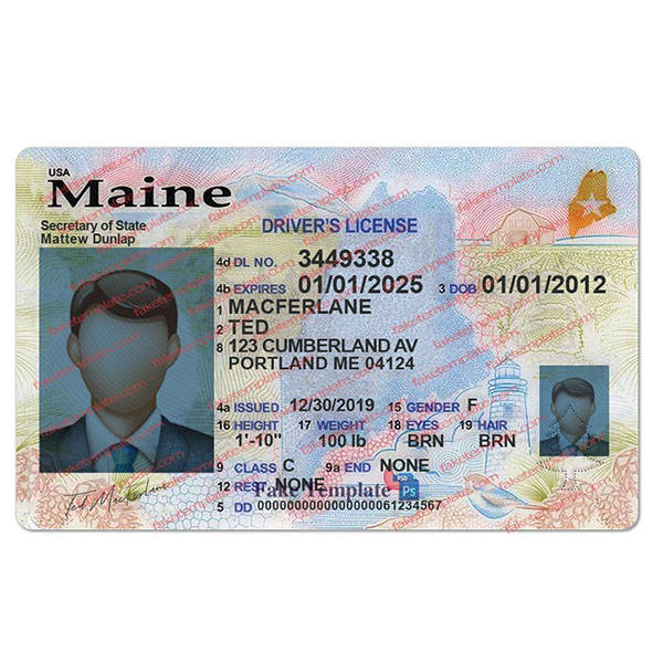 Buying and possessing Maine driver license template is not illegal. However, This template is for web illustrative purpose only. The use for fraudulent purposes is prohibited. so,use the template with your own responsibility.