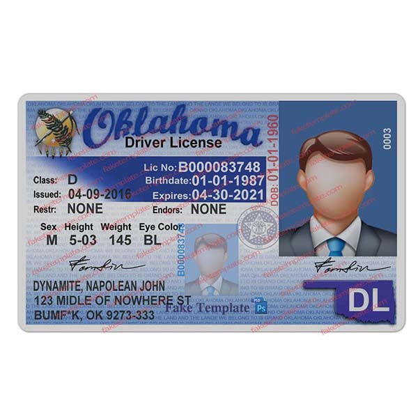 Buying and possessing Fake oklahoma driver license is not illegal. However, This template is for web illustrative purpose only. The use for fraudulent purposes is prohibited. so,use the template with your own responsibility.