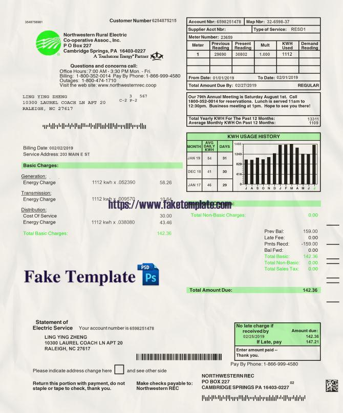 USA Utility Bill Psd Template V5 : USA Proof of address Psd Template