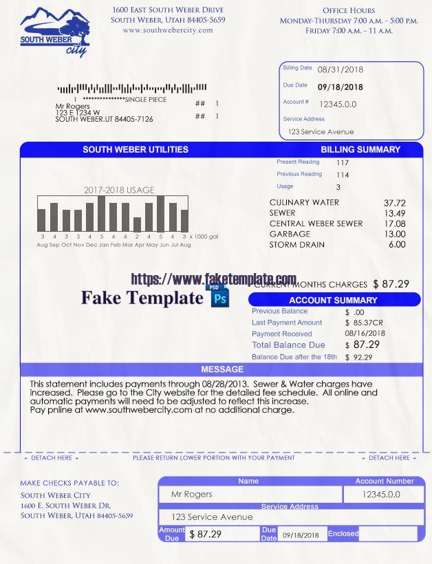 Utah Utility Bill Psd Template : Utah Utility Proof of address Psd Template