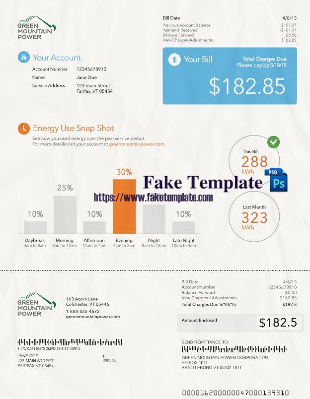 Vermont Utility Bill Psd Template : Vermont Utility Proof of address Psd Template